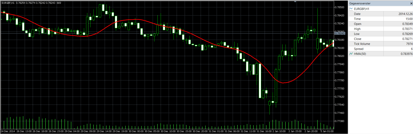 Figure 1. Hull Moving Average (red line) and the HMA value in the legend on the right.